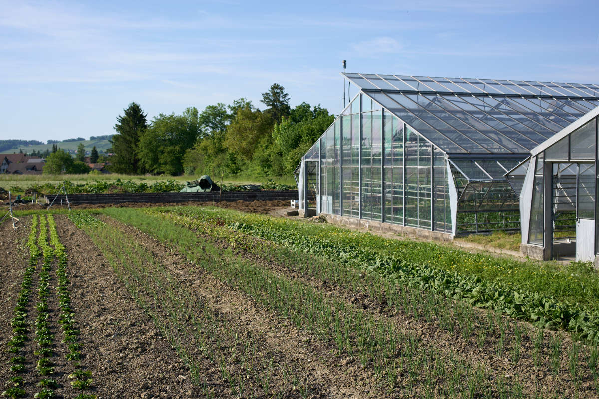Wir bauen unser Gemüse auf der ehemaligen Gärtnereianlage der Forel Klinik in Ellikon an der Thur an. Auf einer Fläche von rund einer halben Hektare wachsen hier während einer Saison über 40 Gemüsearten. Die Bio-Zertifizierung gibt uns klare Leitlinien: Verzicht auf chemisch-synthetische Pestizide und Kunstdünger, dafür organischer Dünger und Förderung der Biodiversität und Bodenfruchtbarkeit. Der organische Dünger (z.B. Kompost) wird durch das Bodenleben in eine für die Pflanzen verfügbare Form gebracht. Ein lebendiger und gesunder Boden ist deshalb die Grundlage für den Bio-Anbau. Neben organischer Düngung helfen eine gut geplante Fruchtfolge (Abfolge verschiedener Kulturpflanzen), Gründüngungen und eine reduzierte Bodenbearbeitung, die Vielfalt eines lebendigen Bodens zu erhalten und zu fördern. Unter Gründüngung versteht man den Anbau von bestimmten Pflanzen, die nicht für den Verzehr gedacht sind, sondern den Boden verbessern.