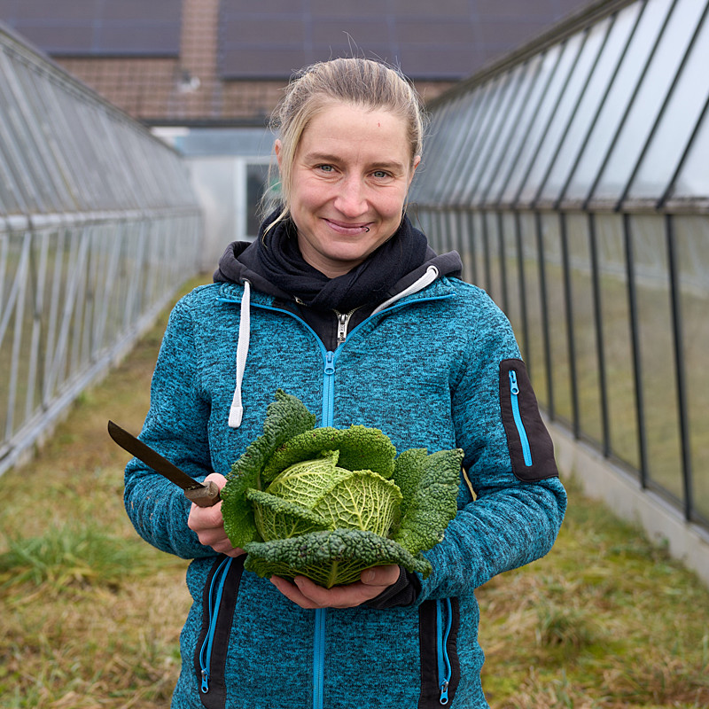 Der Abstand der verschiedenen Kulturen ist in unserem kleinstrukturierten Beetanbau besonders gering, was der Ausbreitung von Schädlingen viel entgegensetzt. Da wir keinen Normen des Grosshandels ausgeliefert sind, muss unser Gemüse nicht immer perfekt aussehen. Das hilft uns, den Einsatz von biologischen Spritzmitteln minimal zu halten. Ausserdem sind wir eingebettet in ein vielseitiges Ökosystem mit Hochstamm-Obstbäumen, Ökowiesen und Hecken, das wir mit nützlingsfördernden Blühstreifen ergänzen. Unser Anbausystem ist Teil dieses Ökosystems. Es profitiert von der Artenvielfalt und trägt auch selbst dazu bei, dass es Platz für viele Lebewesen bietet.
